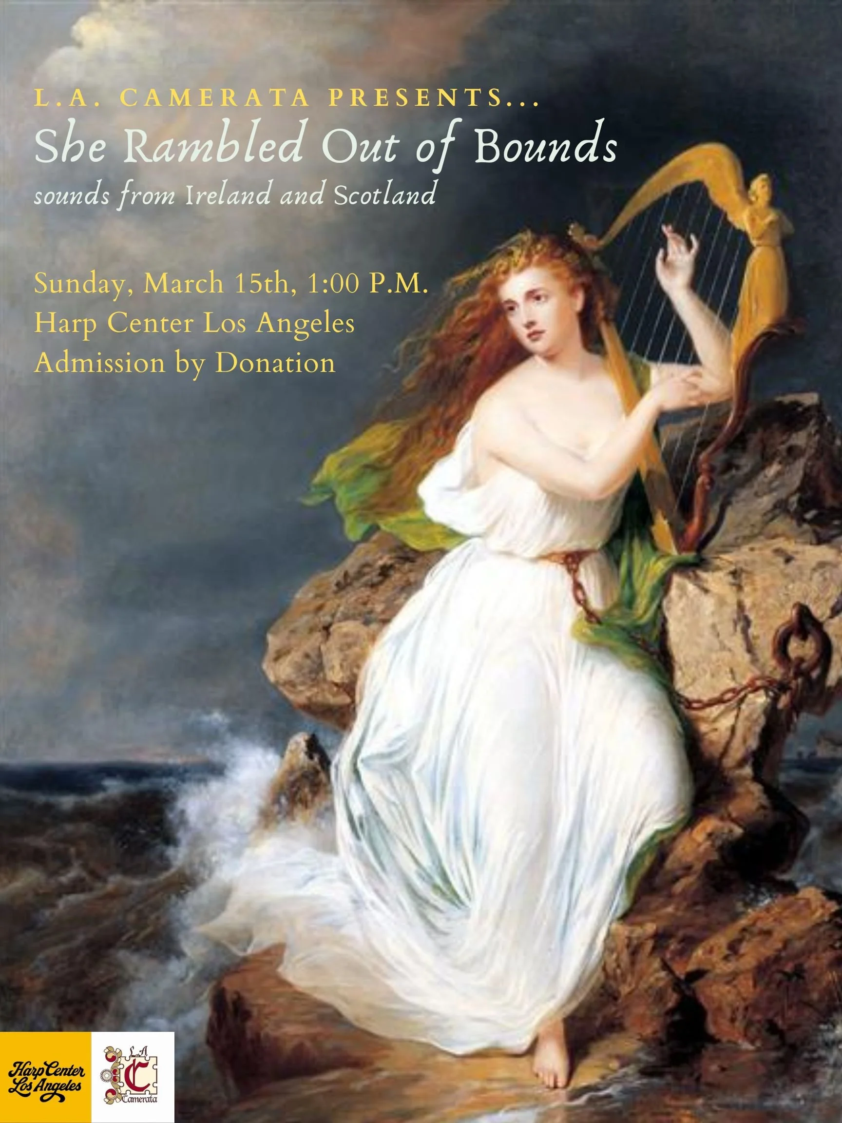 Join us for a performance that promises whimsey, cheek, and fire in equal measure, transporting you across time and space to early modern Ireland and Scotland. We will featuring musical works for harp curated by the Maclean-Clephane sisters and Lady Margaret Wemyss, fiddle pieces by Mistress Magdalen Stirling, lyra viol music from the Leyden Manuscript, and traditional tunes by Carolan. These sounds will weave through poetry by Letitia Pilkington, Mary Monck, and Frances Sheridan. As always, L.A. Camerata musicians will perform on period instruments, including a clarseach (Scottish period harp), baroque fiddle, and viola da gamba.
